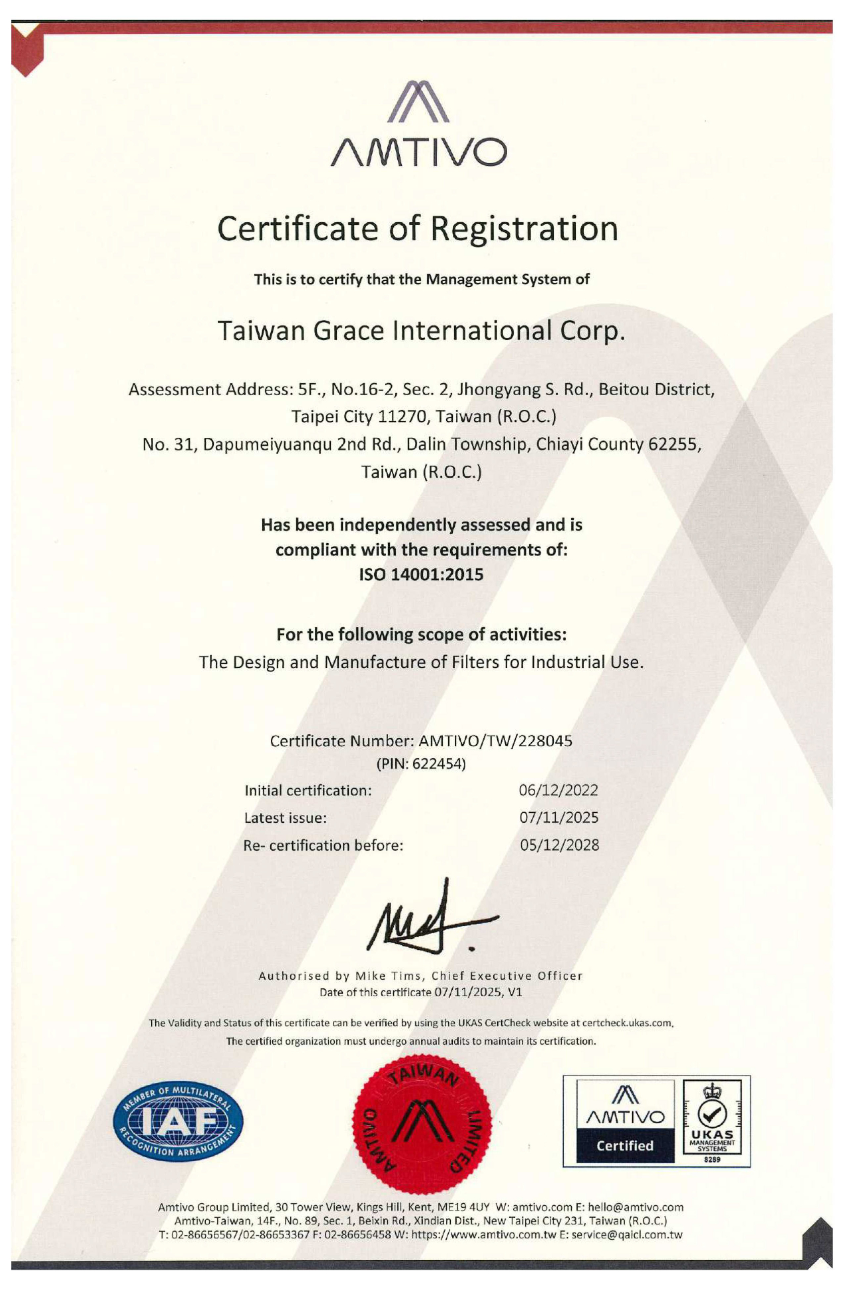 ISO45001:2018 職業安全衛生管理系統稽核通過 |